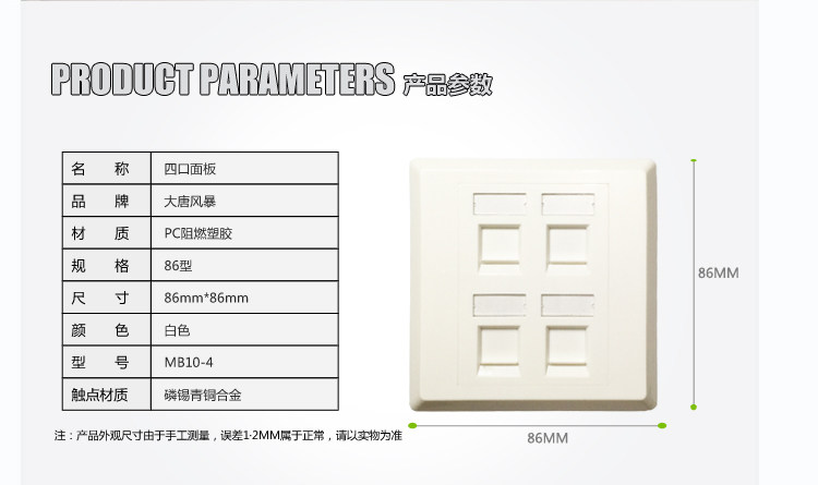 四口信息面板采用86型标准设计,集成四个模块化插槽,支持RJ45网络、光纤、电话及HDMI等多类型接口自由组合,适配企业机房、智慧办公及多媒体中心等高密度布线场景。面板选用高强度阻燃PC材质,表面哑光防刮工艺,符合UL94 V-0防火标准,兼容超五类至七类网线,满足千兆/万兆网络传输需求,实现墙面多设备集中接入与线缆隐蔽管理,提升空间整洁度与专业级部署效率。多协议兼容与工业级抗干扰