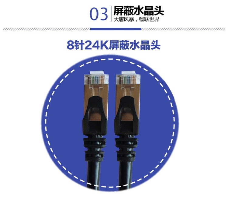 导体选用99.99%无氧铜,搭配十字骨架隔离与铝镁合金丝编织屏蔽层,降低信号衰减与串扰,通过TIA/EIA-568-C.2国际认证。RJ45接口采用50μ英寸镀金触点,抗氧化性强,插拔寿命≥2000次,支持-40℃~75℃宽温环境。外被采用高密度阻燃PVC,抗拉强度达100N,通过UL CM级防火与RoHS环保认证,适配机房密集布线及工业复杂环境部署。全场景适配与智能组网