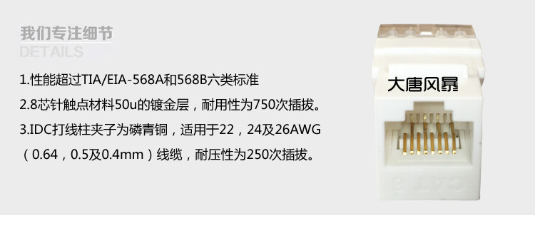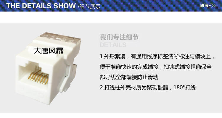 六类非屏蔽模块(Cat6)——万兆网络传输优选
